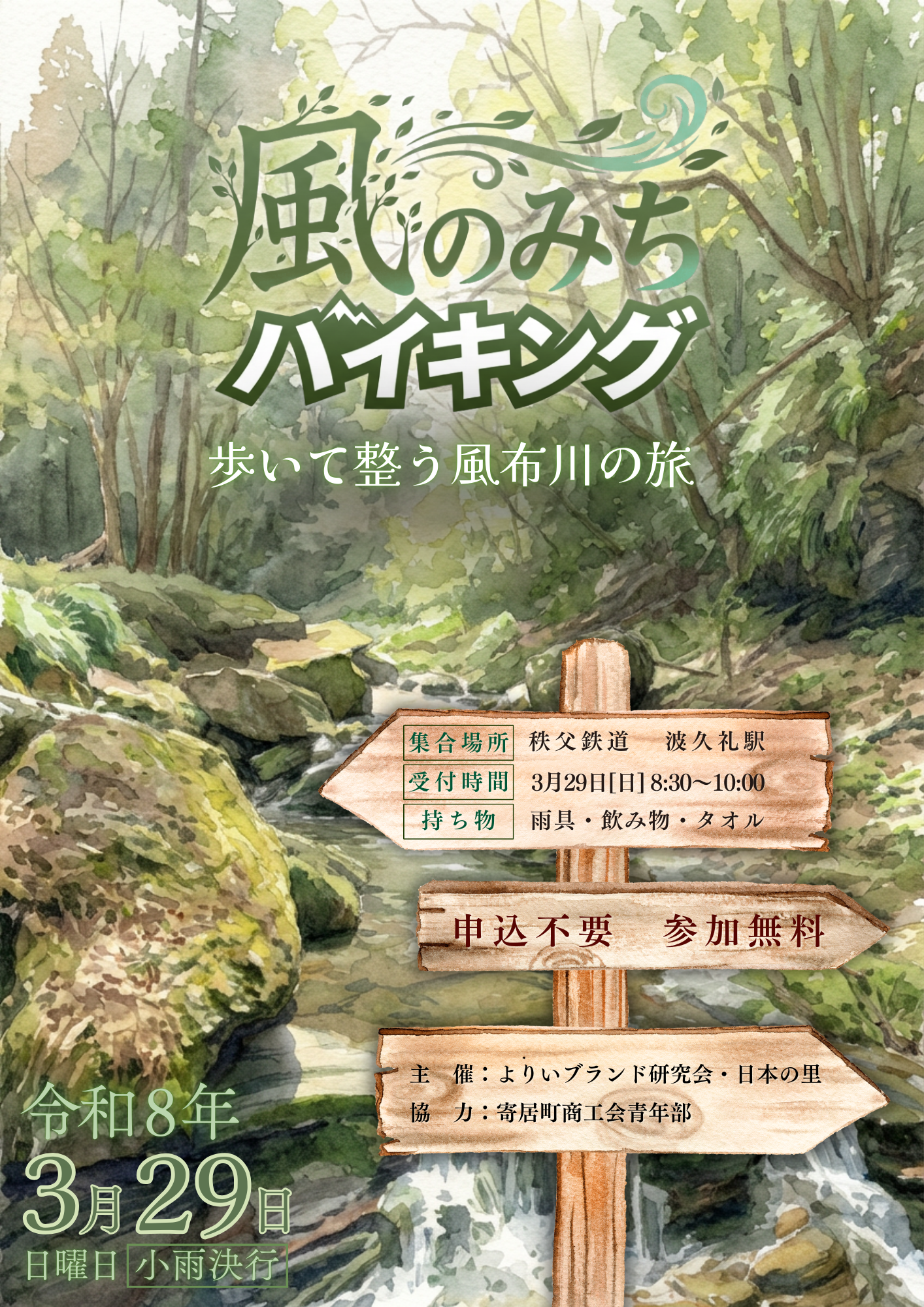 春の息吹を感じる季節、風布川の清流沿いに整備された「風のみち」を歩き、自然豊かな里山を巡るハイキングイベントです。