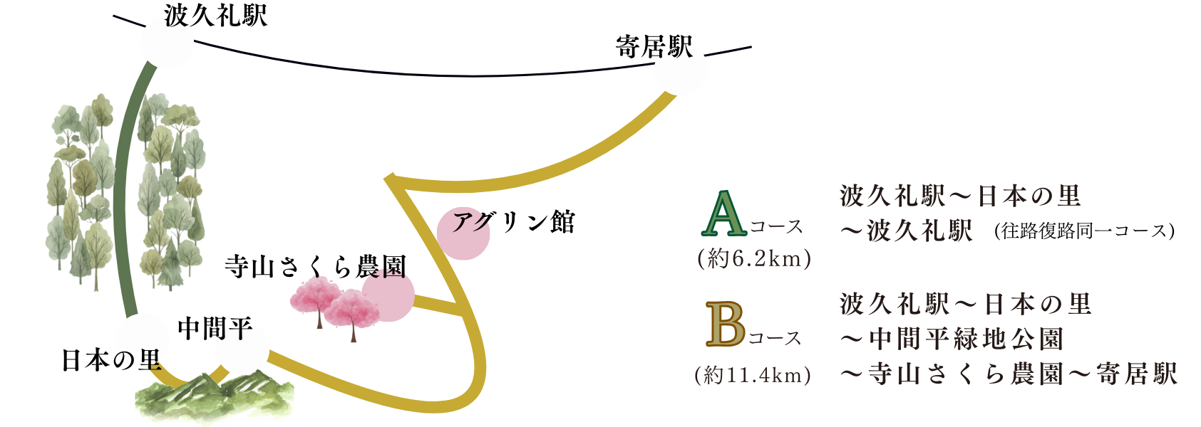 • 波久礼駅及び近隣の駐車場は使用できません。波久礼駅までは電車をご利用ください。