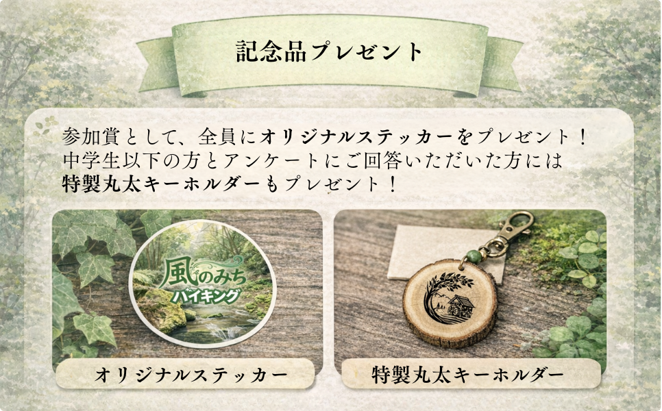 • ハイキング参加中に生じた参加者の事故やケガ、また参加者が他に与えた損害については、主催者は一切その責任を負いません。